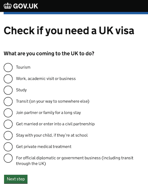 O site do governo tem um excelente guia que, baseado em algumas perguntas, diz se você precisa ou não de um visto. Caso seja necessário, também mostra as opções disponíveis.